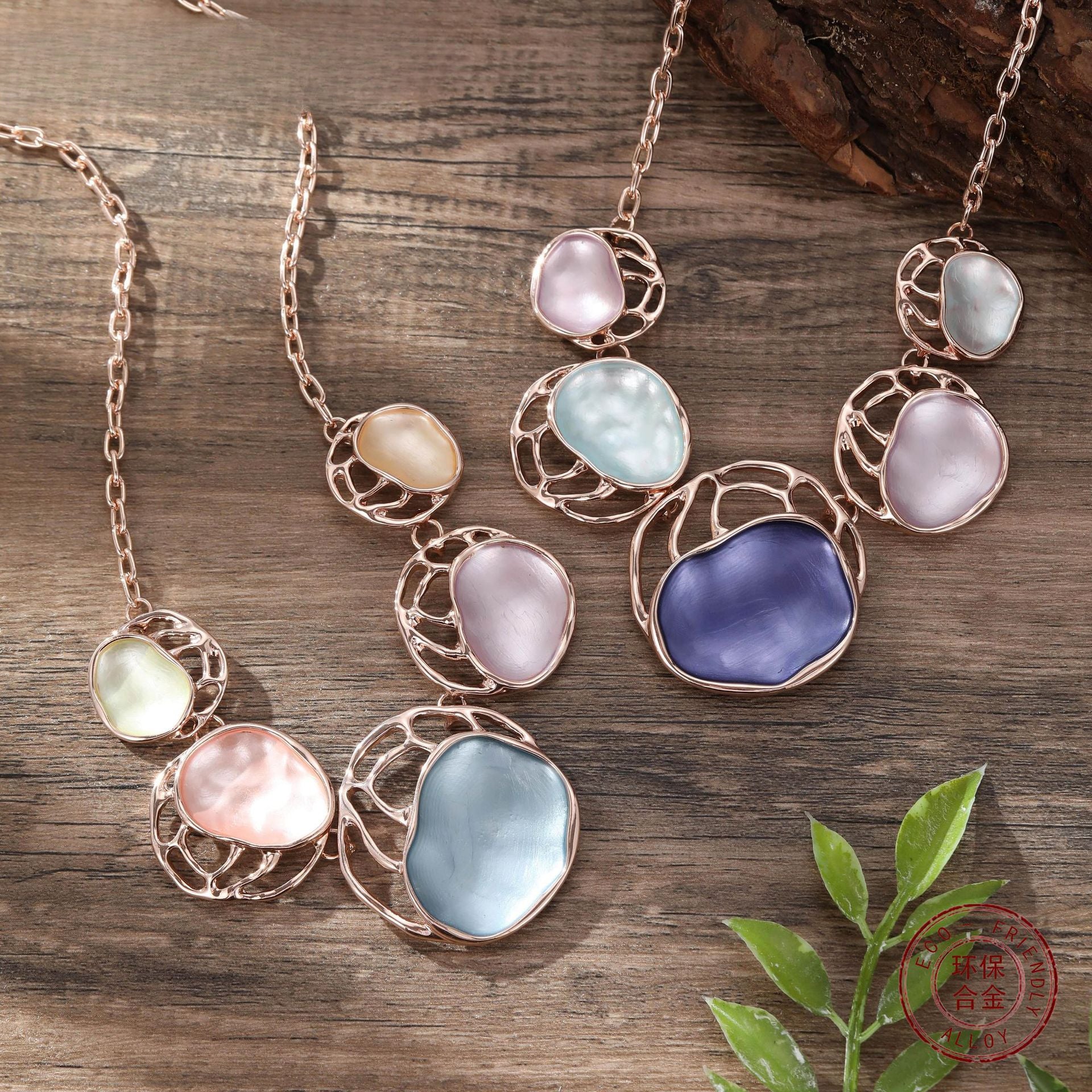 Wholesale New Colorful Painted Oil Openwork Oval Flower Necklace