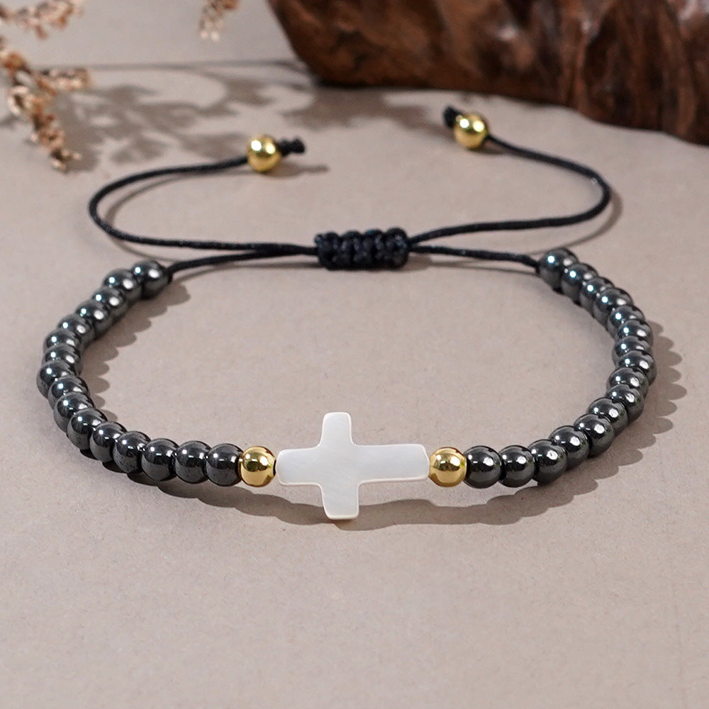 Wholesale Shell Cross Black Gallstone Beaded Bracelet