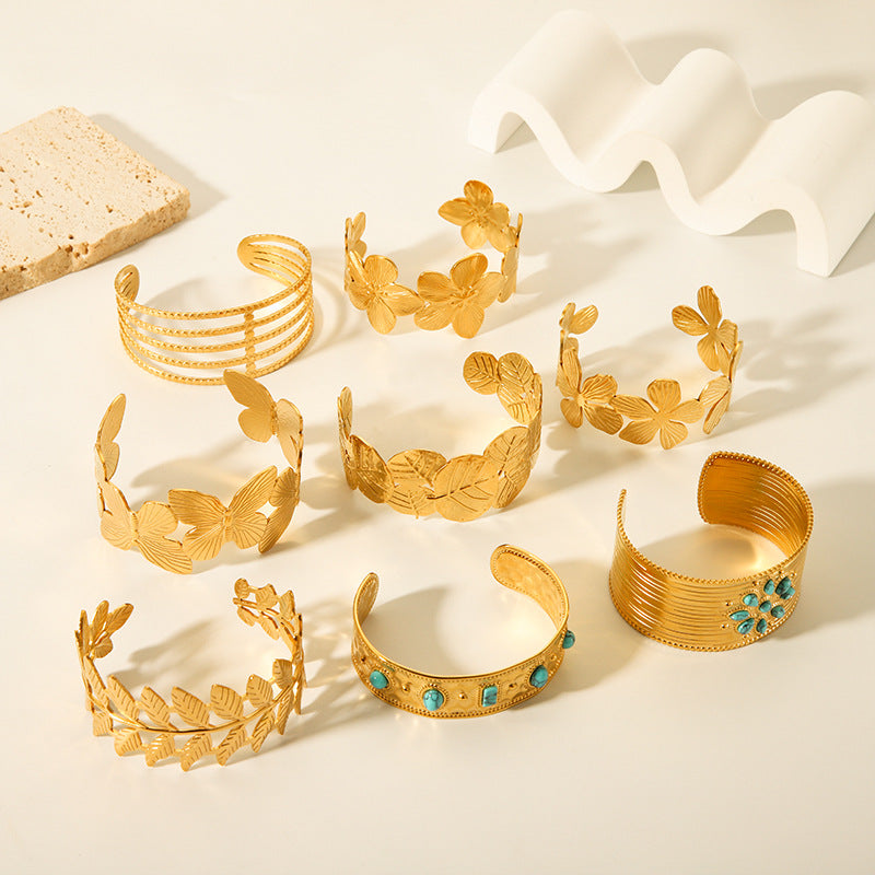 Wholesale Stainless Steel 18K Gold Plated Non-fading Open Vintage Titanium Steel Bracelet