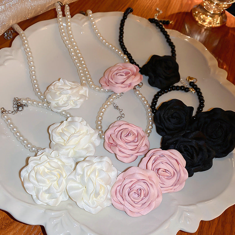 Wholesale Vintage Fabric Flower Sweet Necklace Bracelet Earring Set