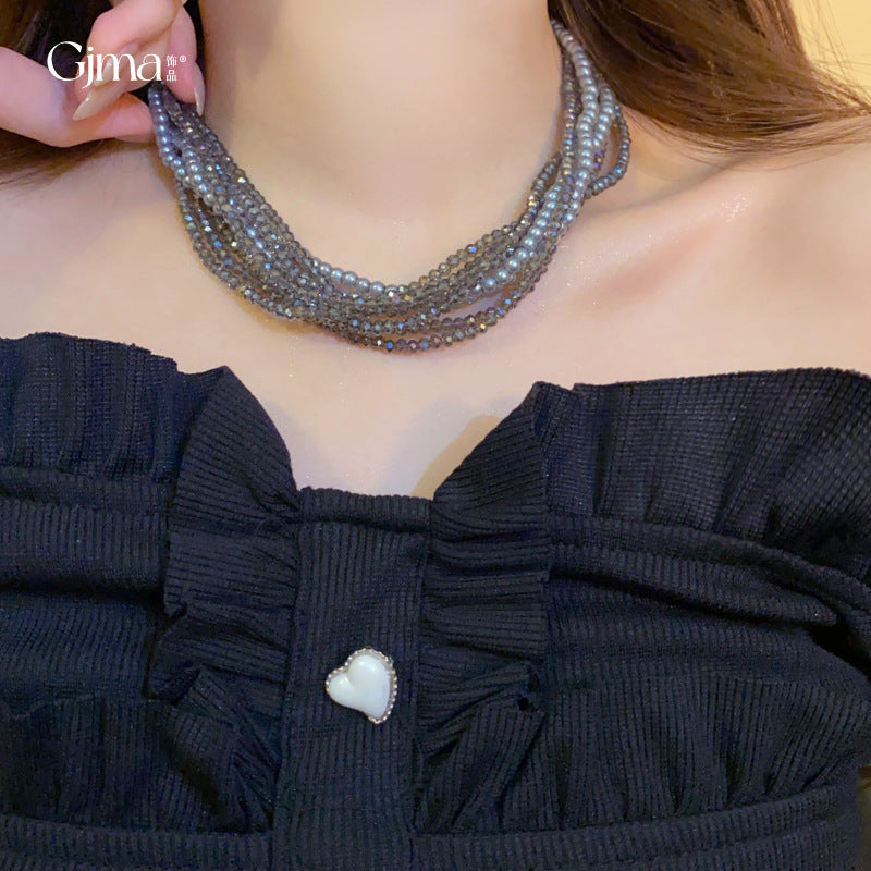 Wholesale Vintage Multi-layered Crystal Pearl Necklace Stylish and Elegant Clavicle Chain