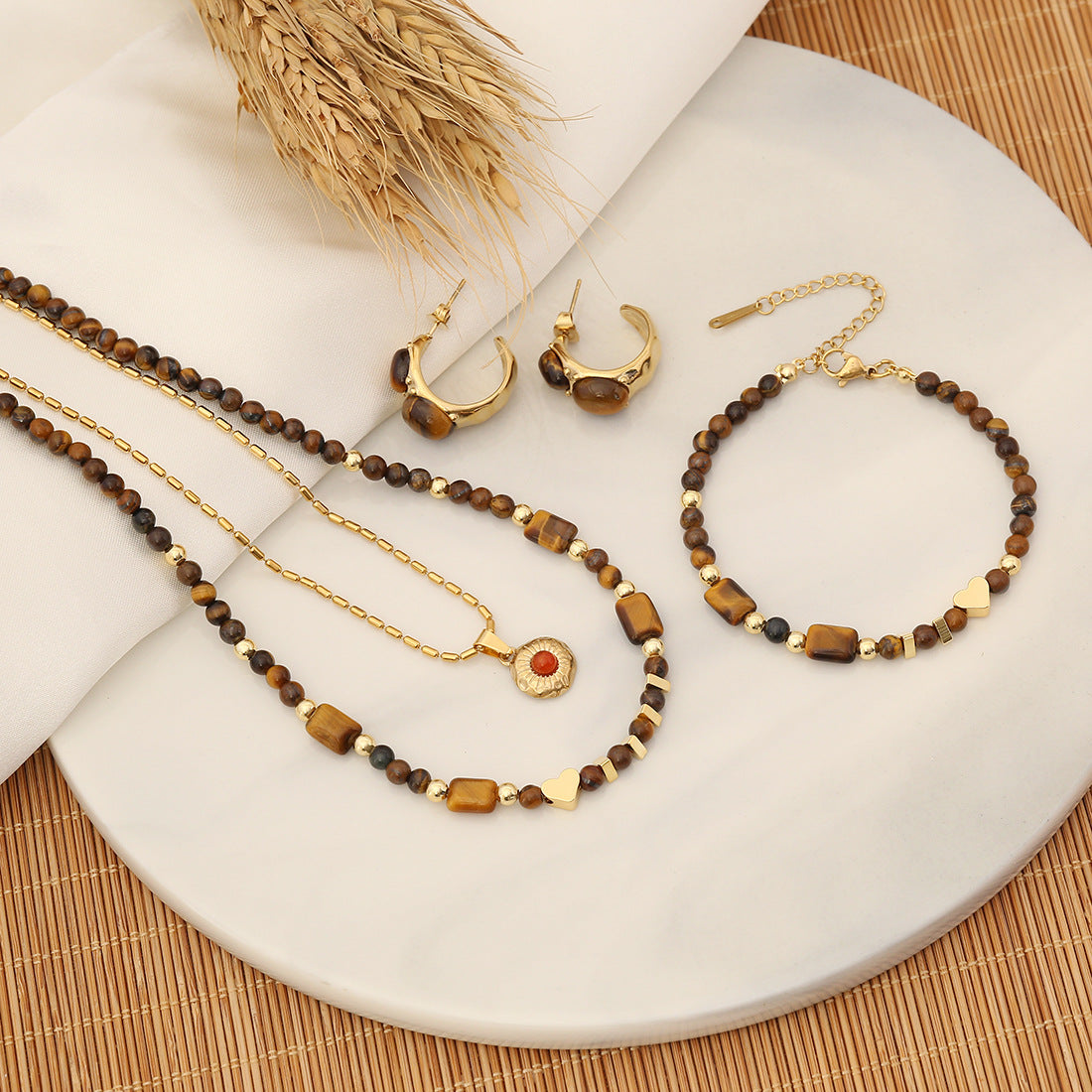 Wholesale Vintage Tiger Eye Stone Beaded Necklace Bracelet Earrings Set