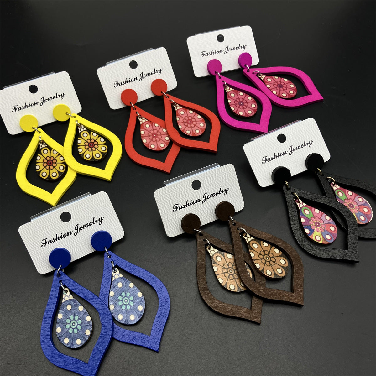 Wholesale Wooden Water Drop Vintage Wooden Earrings