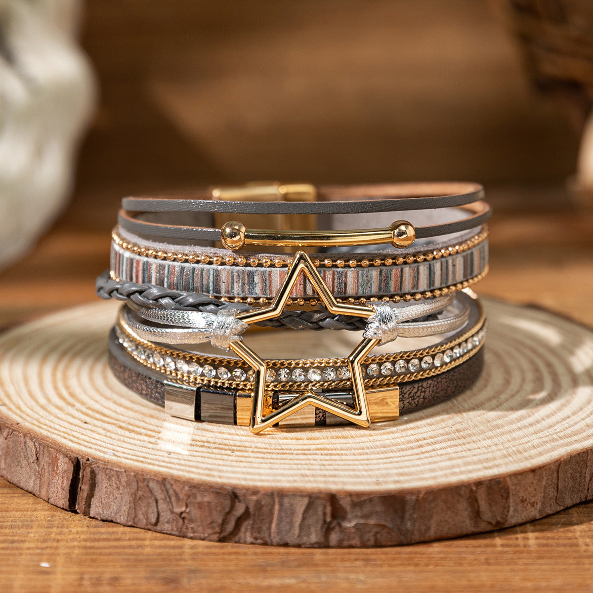 Wholesale Bohemian style pentagram magnetic buckle Layered Bracelet Set