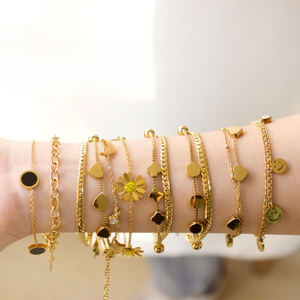 Wholesale Stainless Steel Love Circular Geometric Shell Double Layer Bracelet