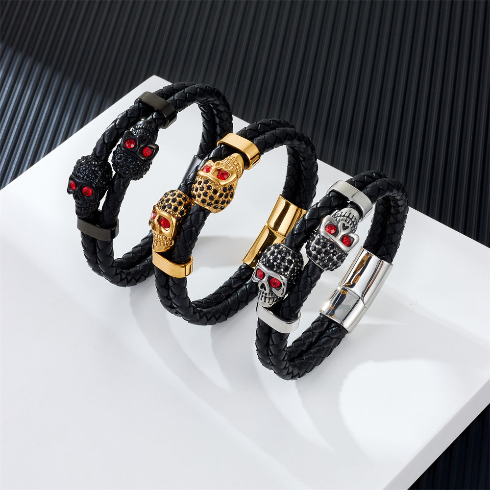 Wholesale Diamond Four Layer Braided Leather Bohemian Bracelet