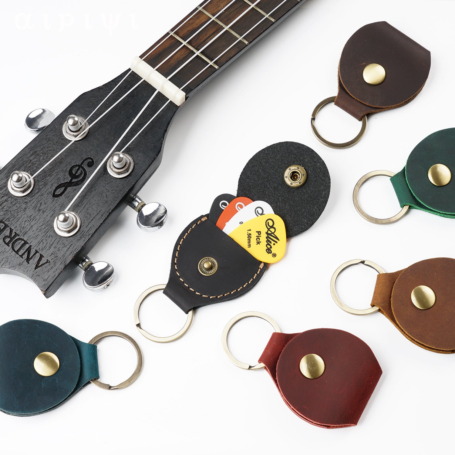 Wholesale Cowhide Guitar Pick Bag Storage Box Leather Keychain