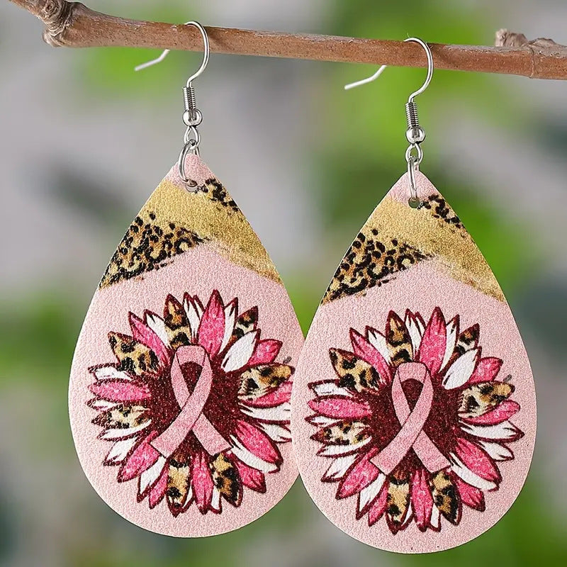 Wholesale Fan Strap Leopard Print Sunflower Double Sided Print Earrings
