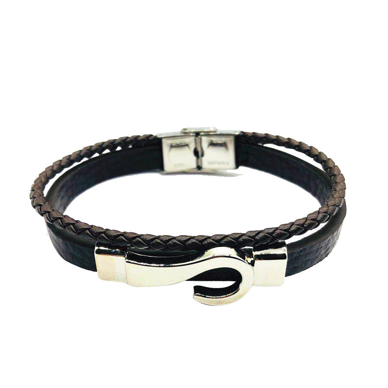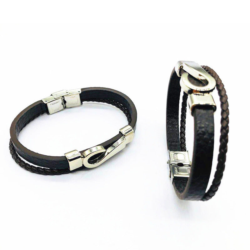 Wholesale Hook Type Stainless Steel Genuine Leather Woven Bracelets