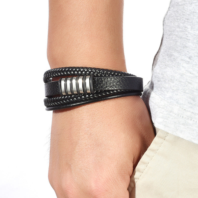 Wholesale Titanium Steel Woven Leather Rope Bracelets