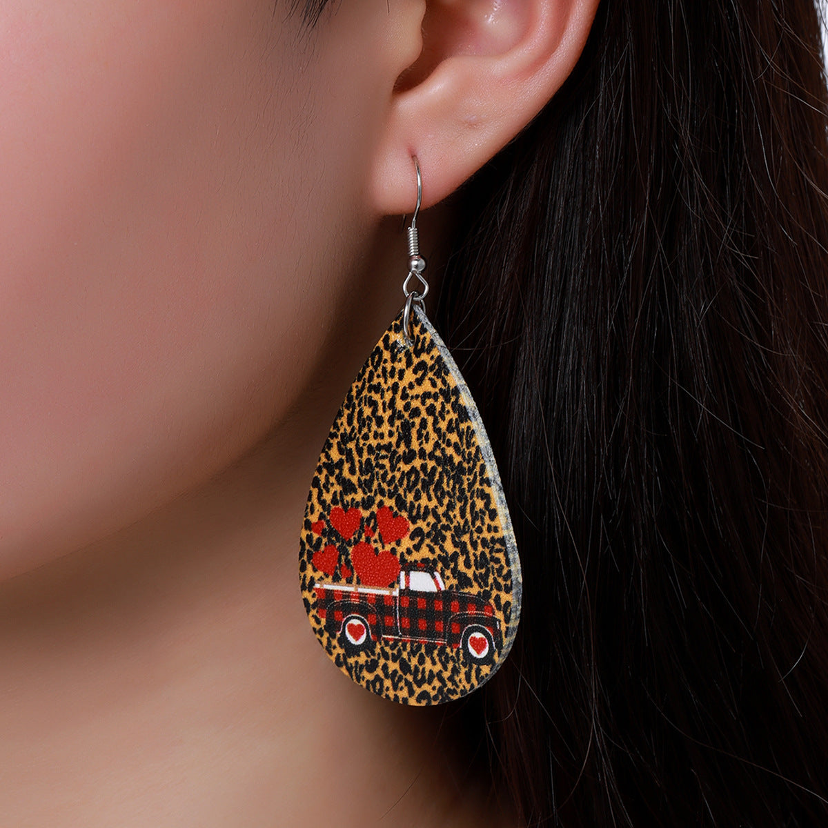 Wholesale Valentine's Day Vintage Leopard Leather Drop Earrings