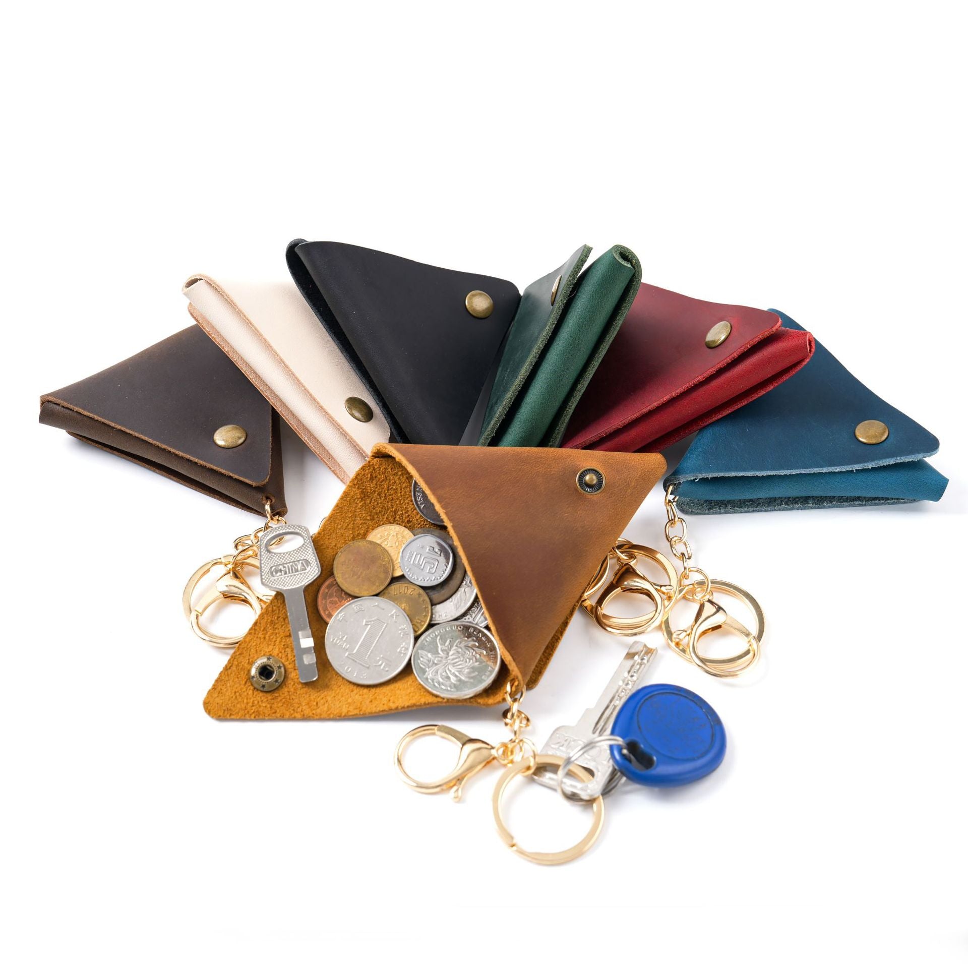 Wholesale Vintage Handmade Top Layer Cowhide Mini Coin Purse Leather Keychain