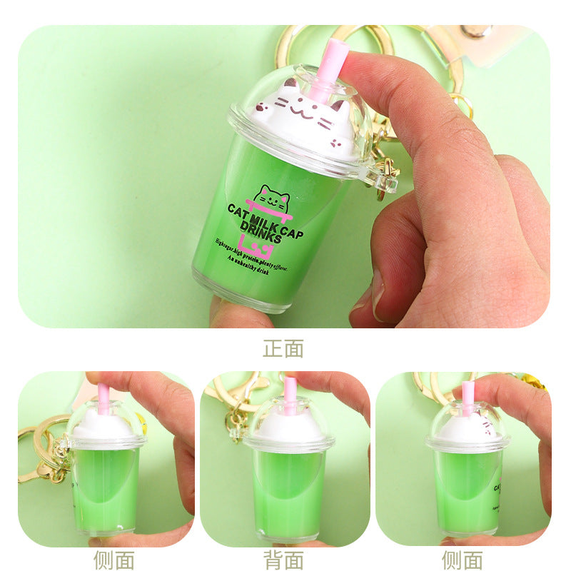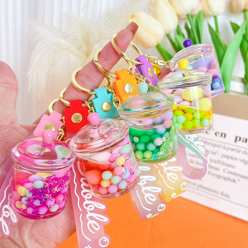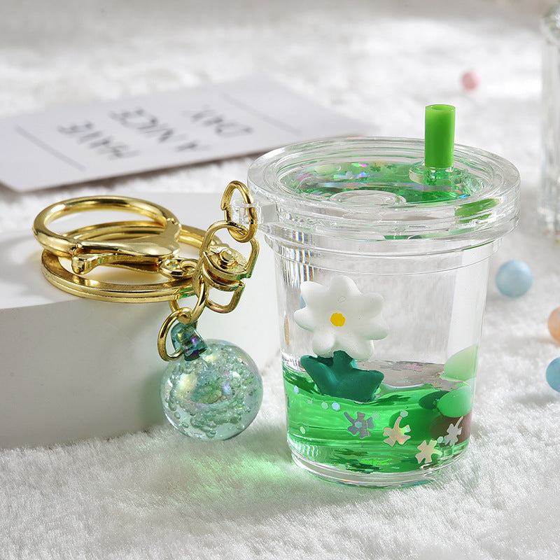 Wholesale Acrylic Oiled Milk Tea Cup Liquid Quicksand Key Chain