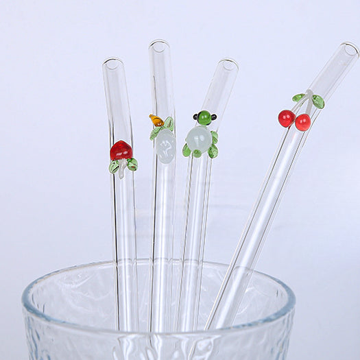 Wholesale Creative Fruit Animal Pure Handmade Heat-resistant High Borosilicate Glass Straws