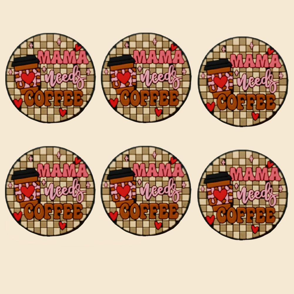 Wholesale 10pcs Cartoon Plaid Coffee Mother's Day Pattern Silicone Beads