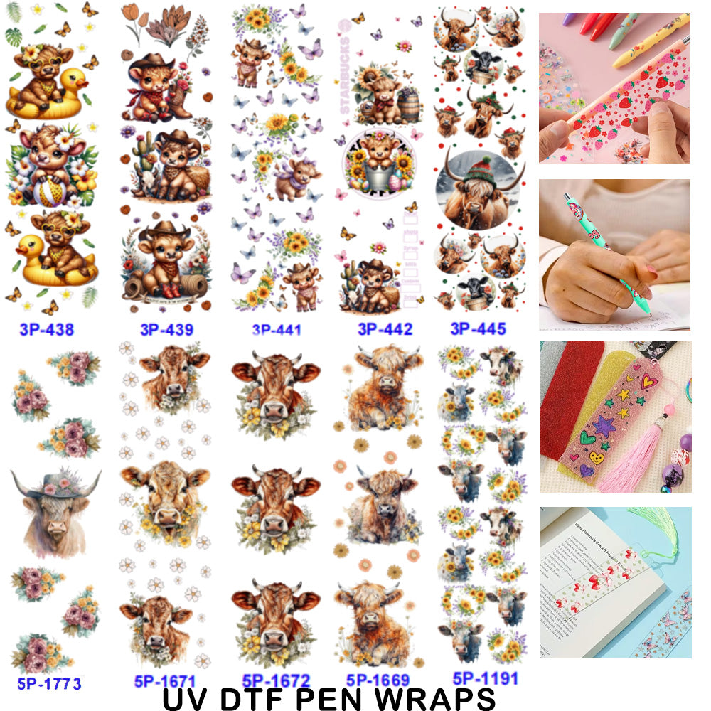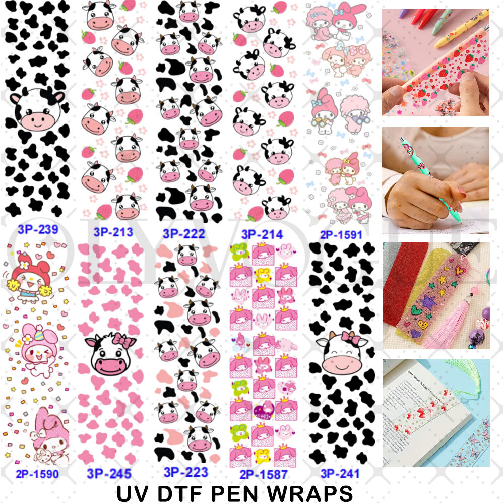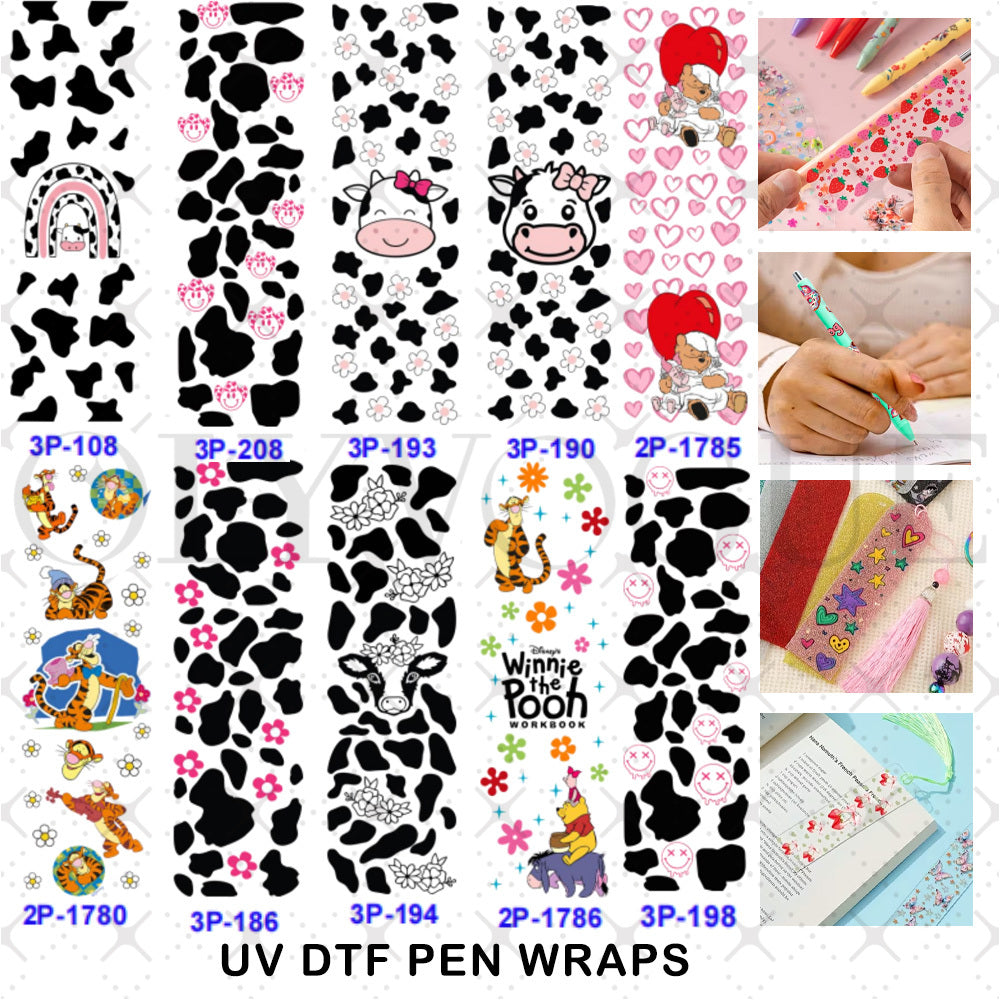 Wholesale 2/8/16Pcs Cow Print Calf Pen & Bookmark Stickers UV DTF Wraps