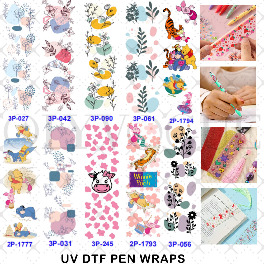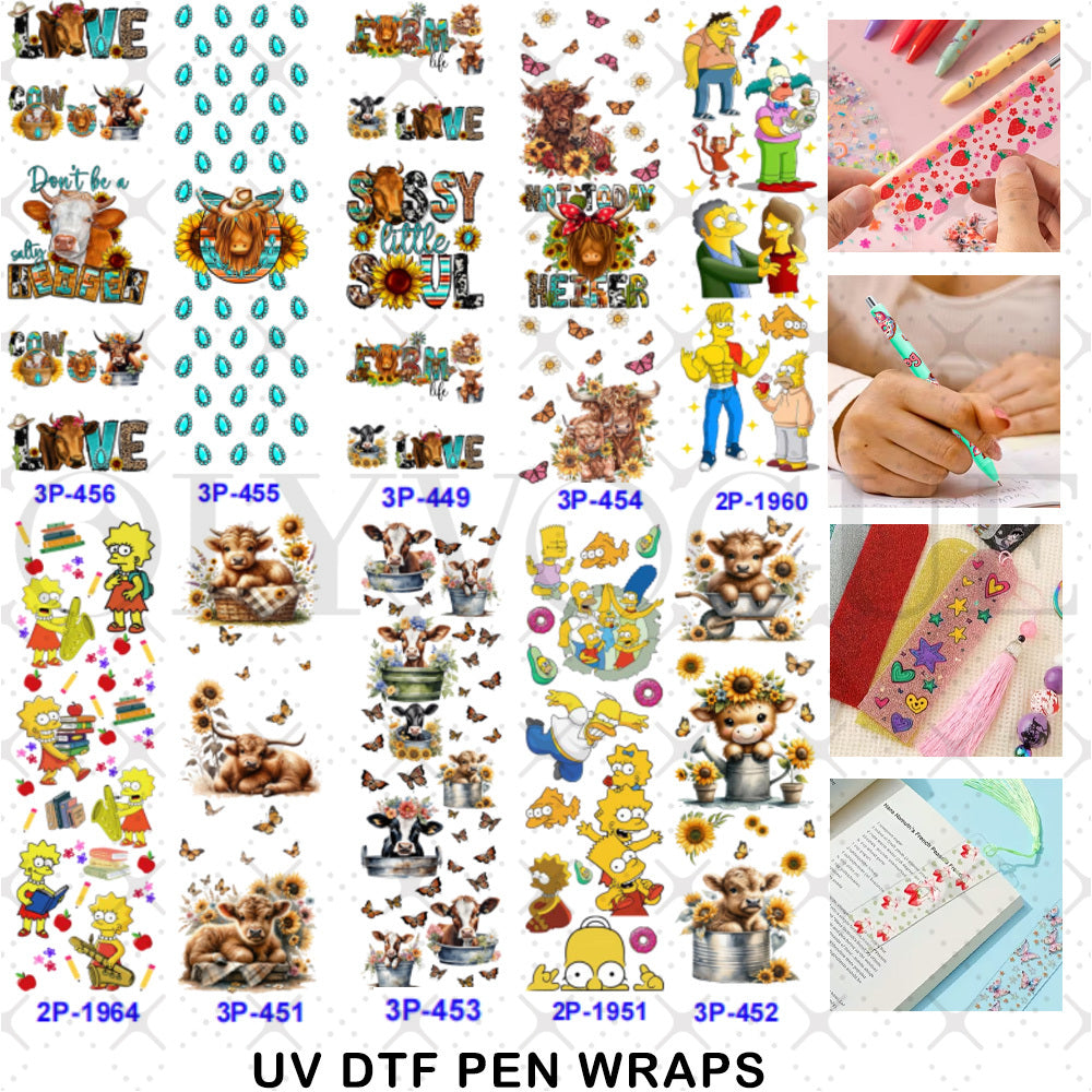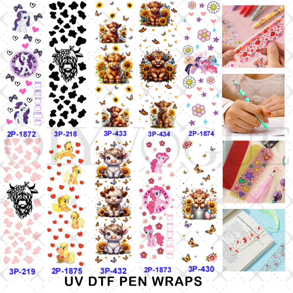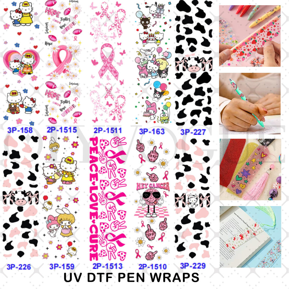 Wholesale 2/8/16Pcs Cow Print Calf Pen & Bookmark Stickers UV DTF Wraps