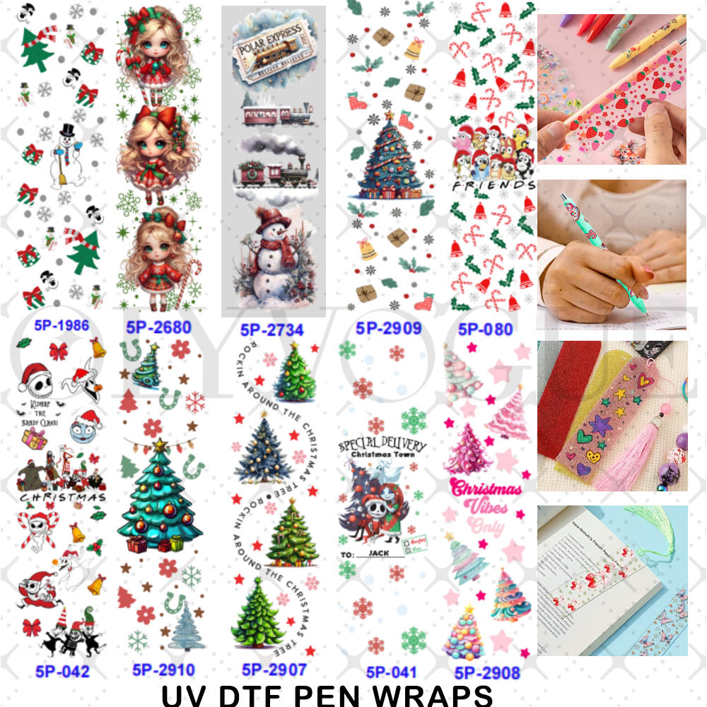 Wholesale 2/8/16Pcs Christmas Tree Pen & Bookmark Stickers UV DTF Wraps