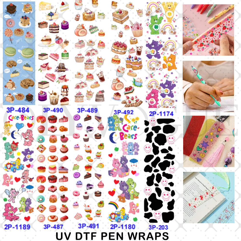 Wholesale 2/8/16Pcs Dessert Bear Pen & Bookmark Stickers UV DTF Wraps