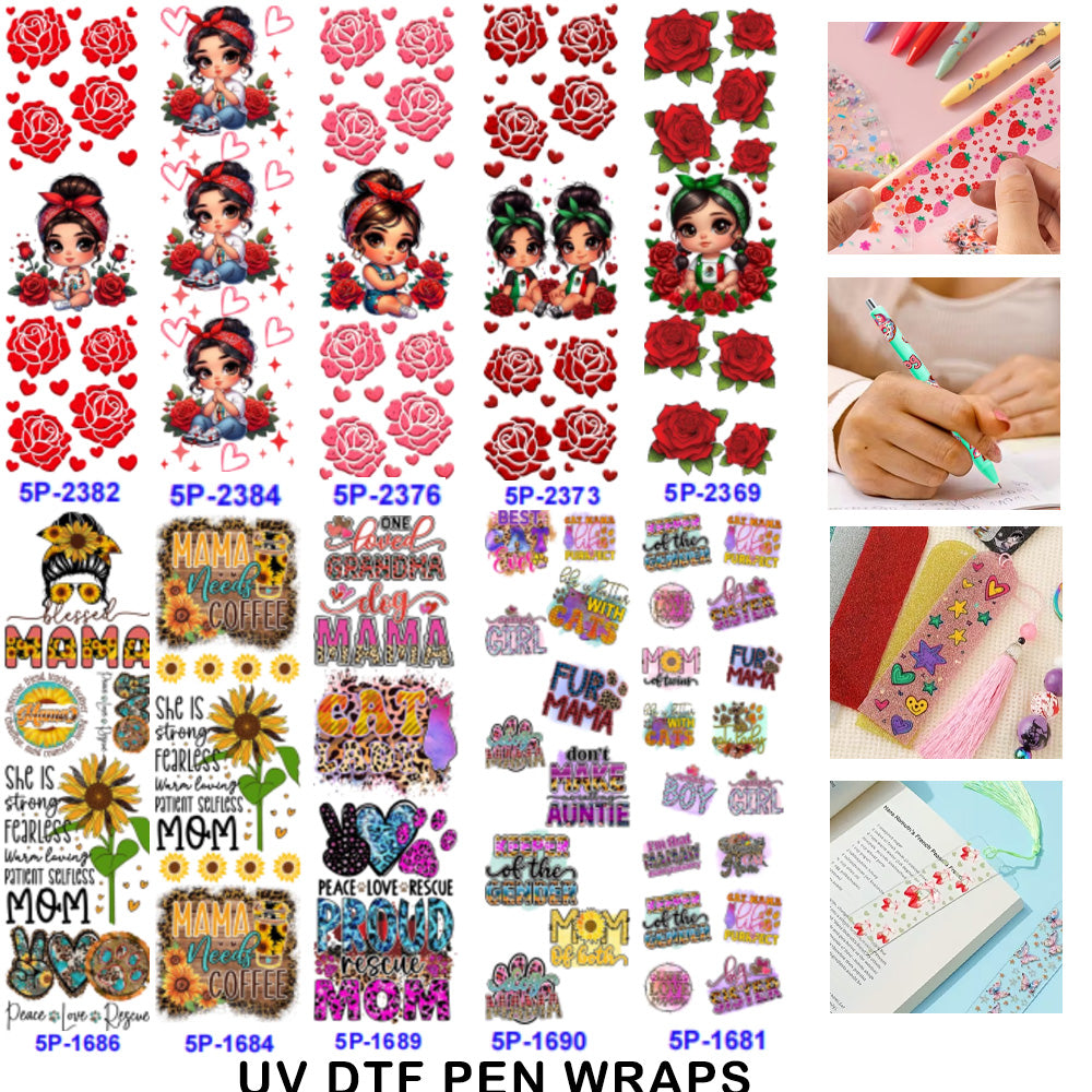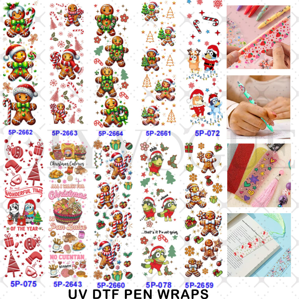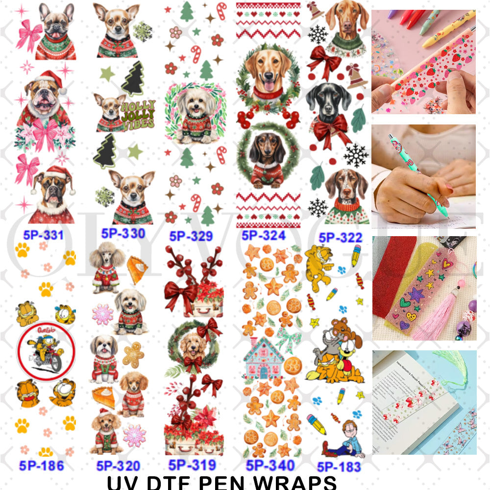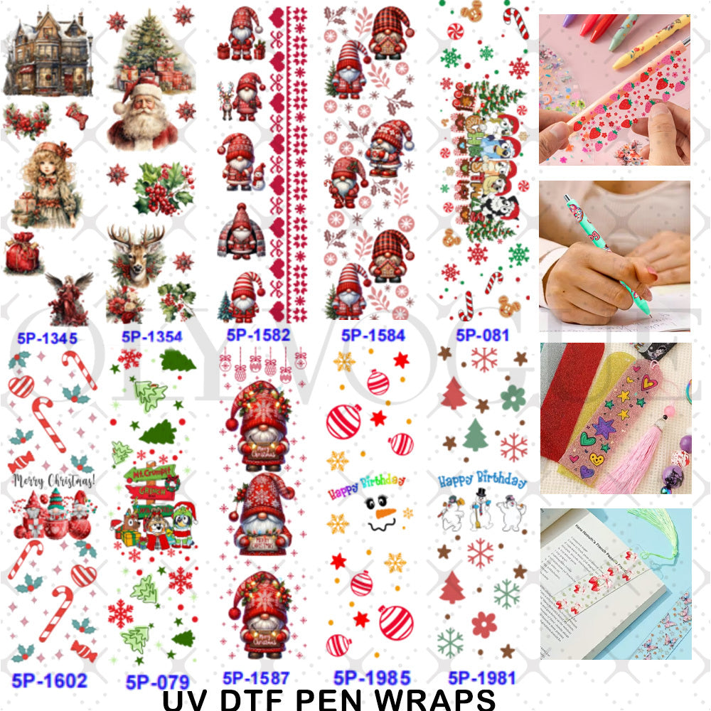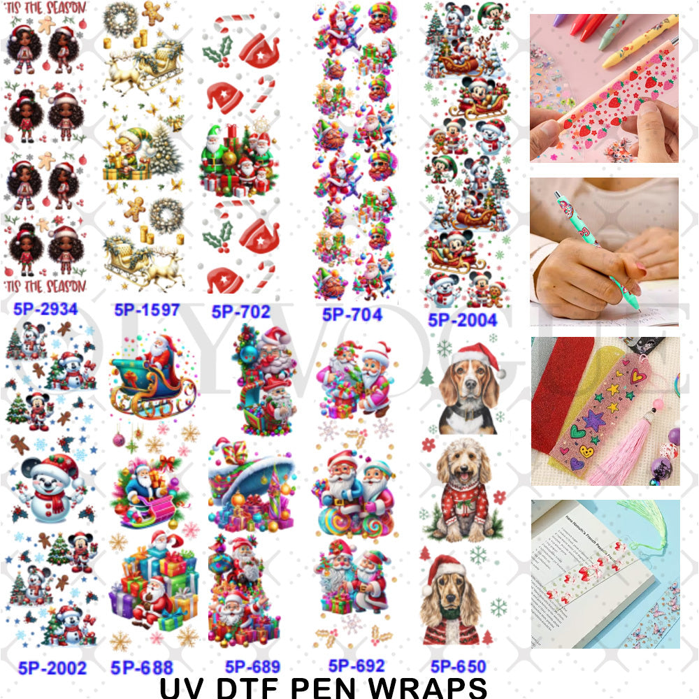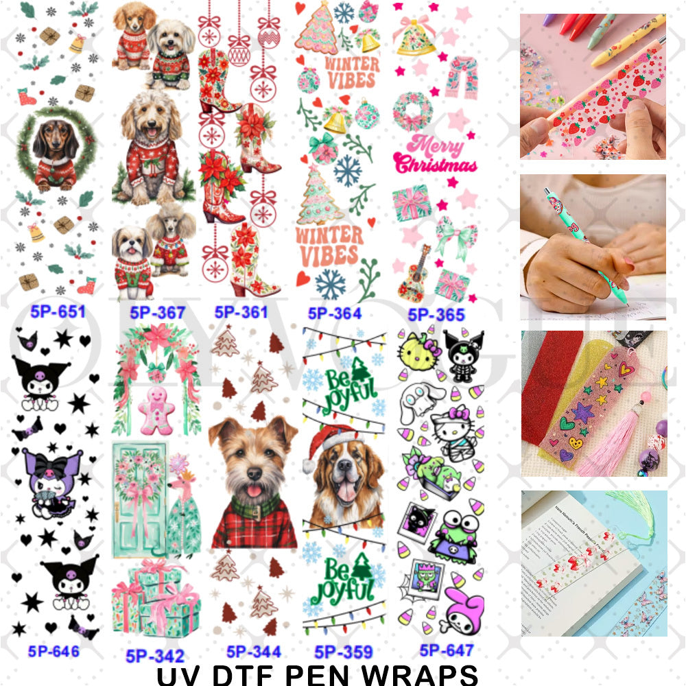 Wholesale 2/8/16Pcs Pet Christmas Pen & Bookmark Stickers UV DTF Wraps