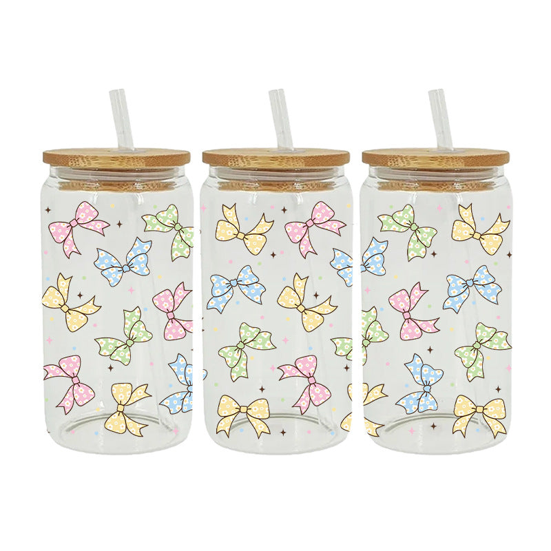 Wholesale colorful bow 16oz Cup UV DTF Wraps
