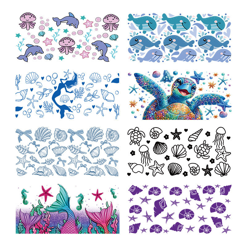 Wholesale Blue marine animals 16oz Cup UV DTF Wraps