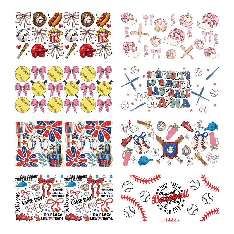 Wholesale Baseball Bow Series 16oz Cup UV DTF Wraps
