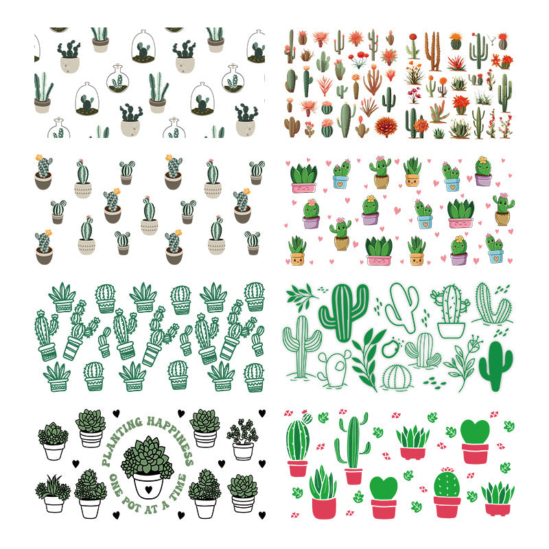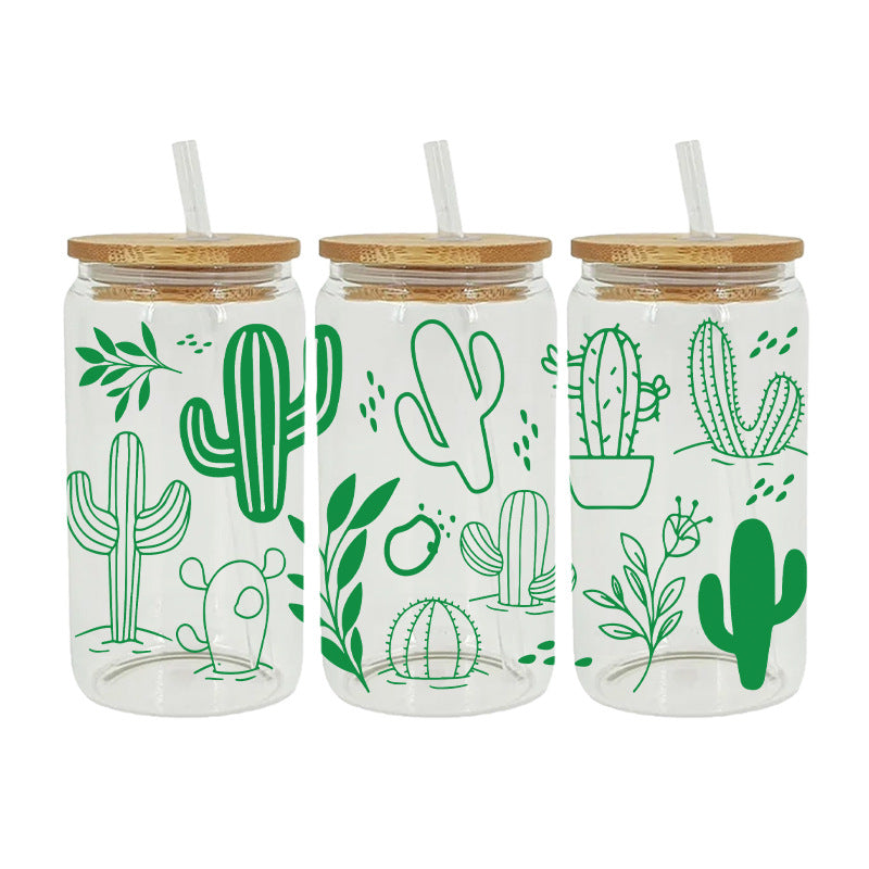 Wholesale Green succulent cactus 16oz Cup UV DTF Wraps