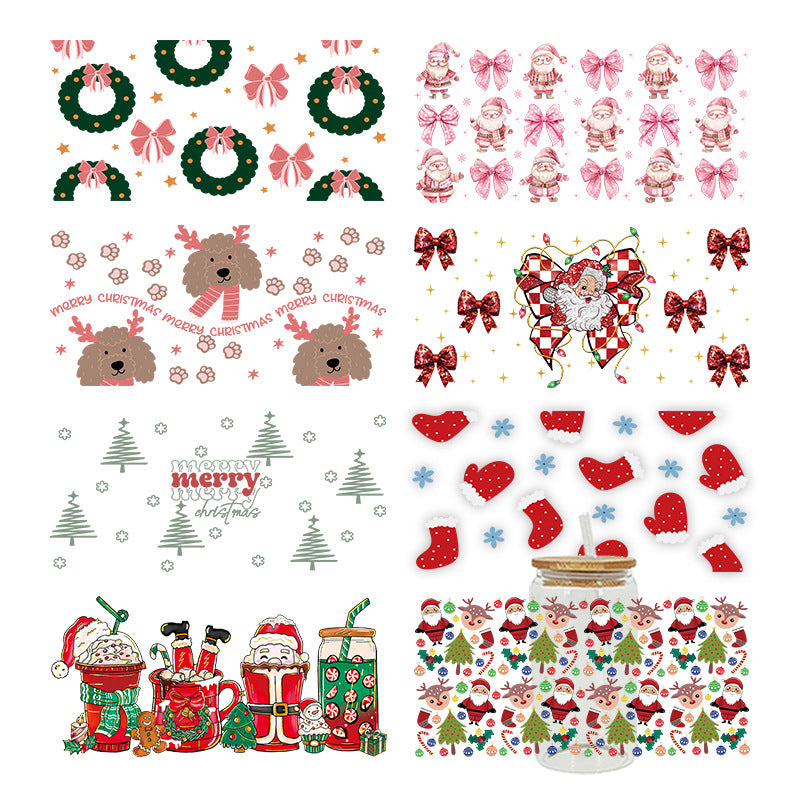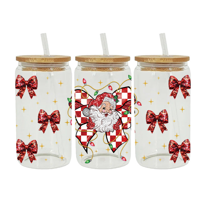Wholesale Christmas Bow Santa Claus Series 16oz Cup UV DTF Wraps