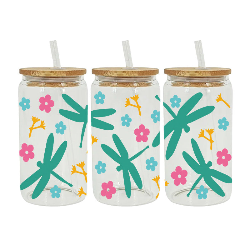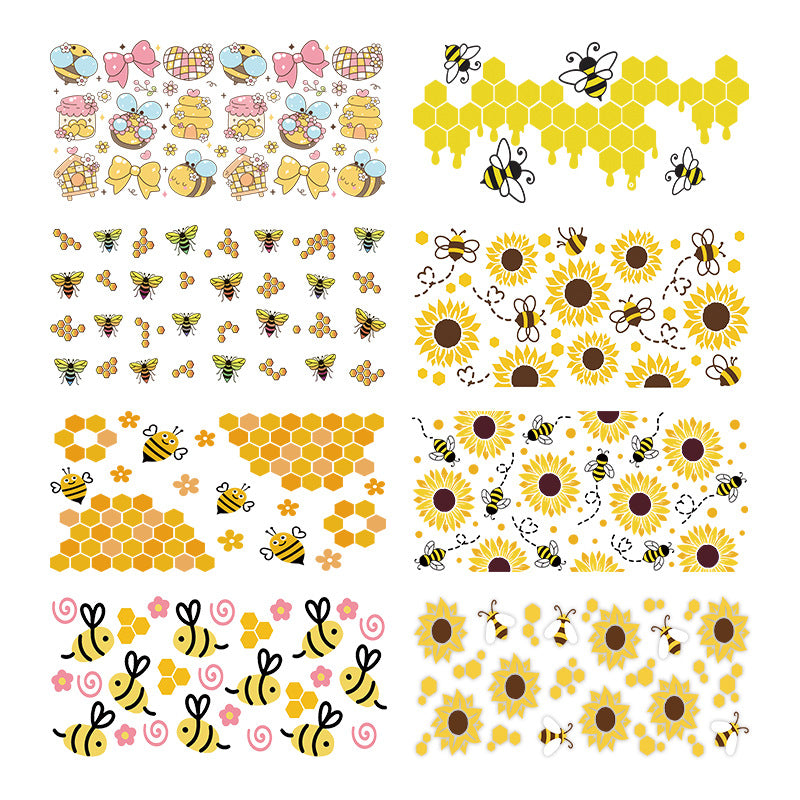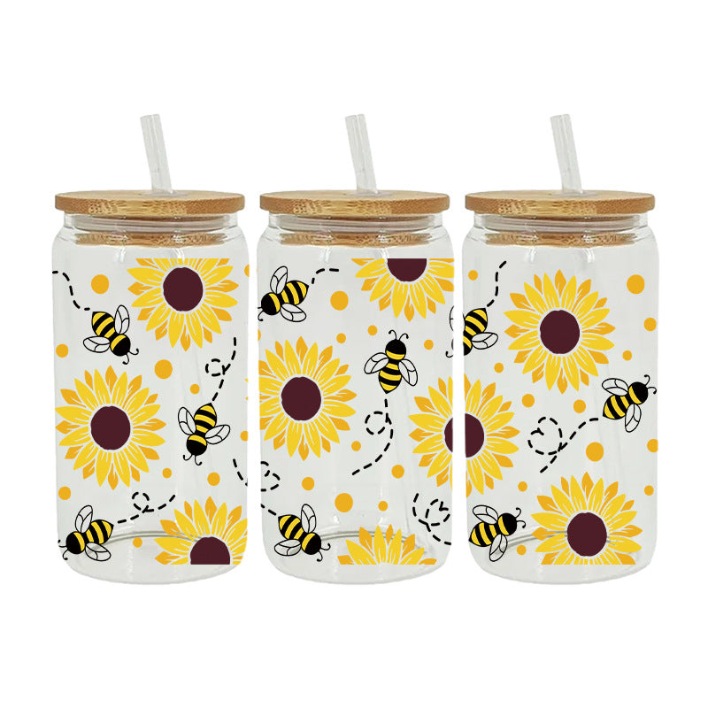 Wholesale Colorful bee flowers 16oz Cup UV DTF Wraps