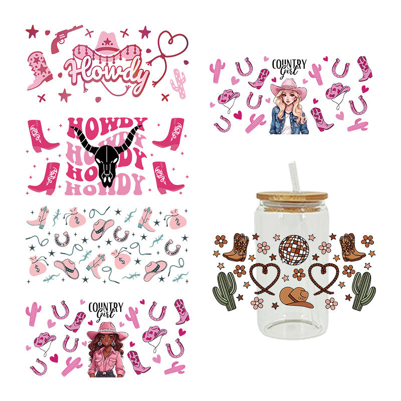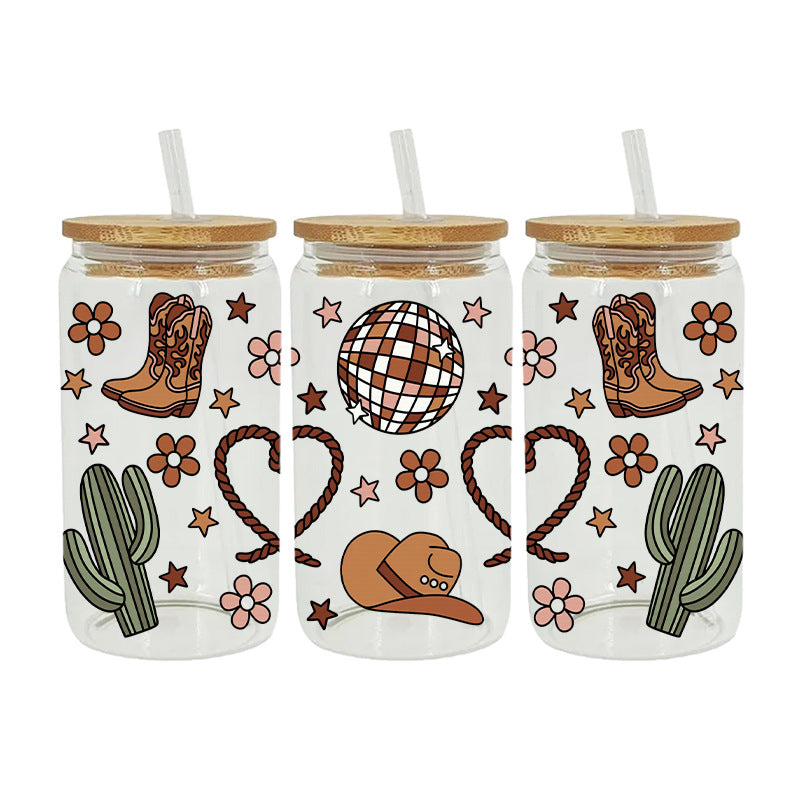 Wholesale Western style hat boots 16oz Cup UV DTF Wraps