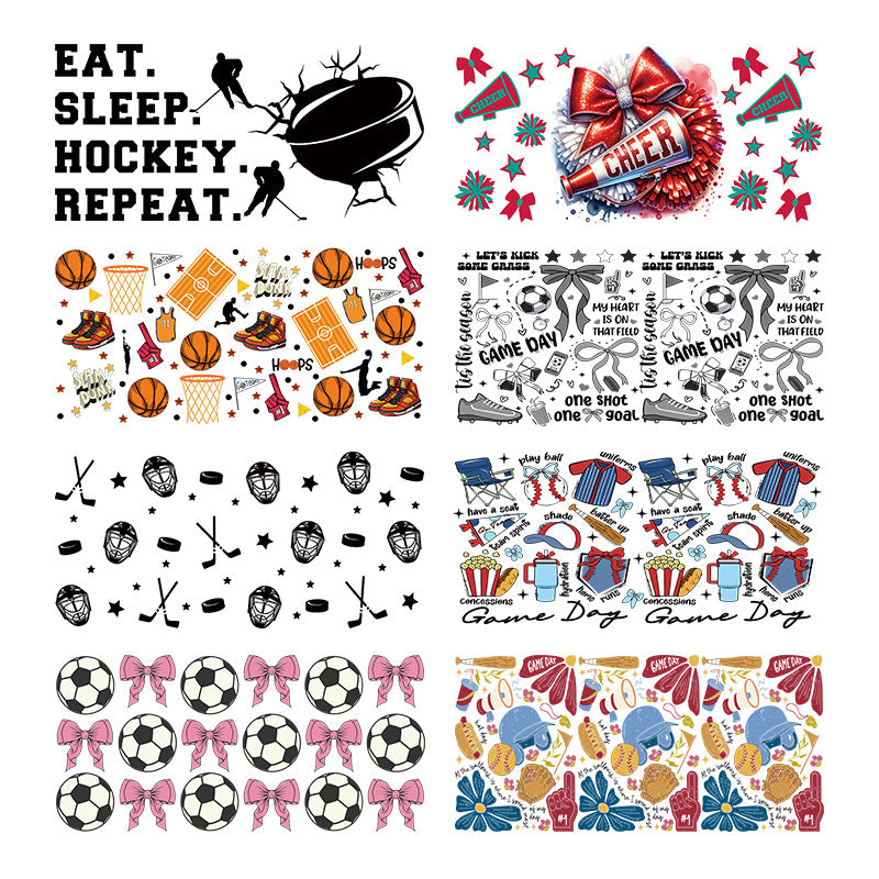 Wholesale Ball sports bow 16oz Cup UV DTF Wraps