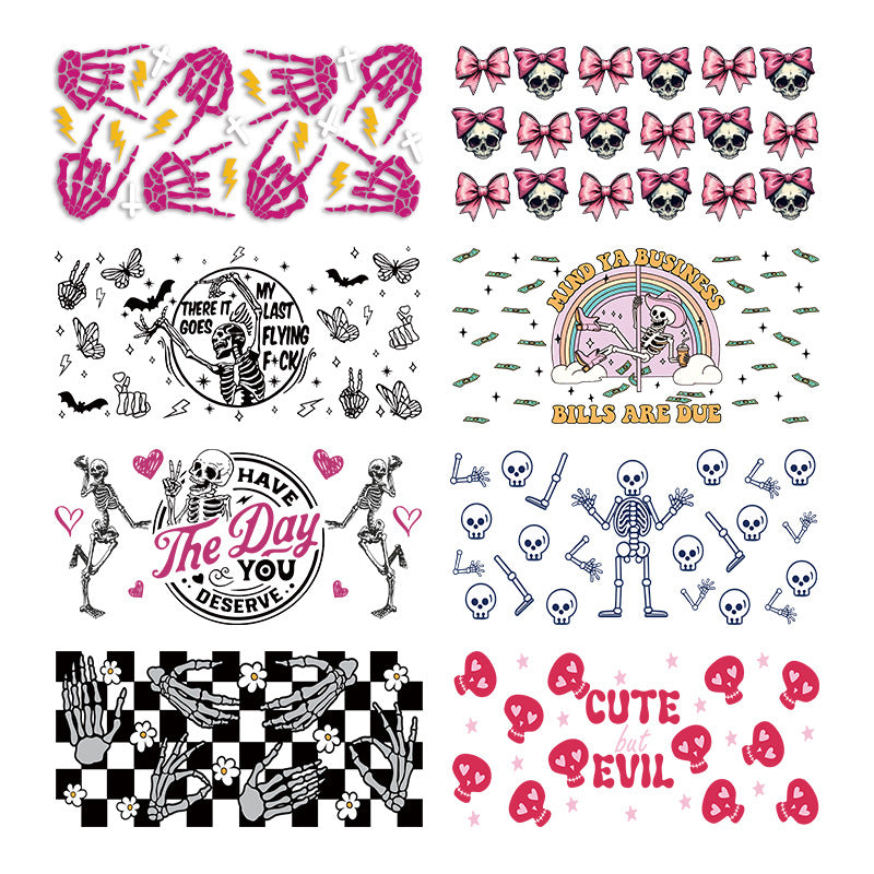 Wholesale Skeleton bow 16oz Cup UV DTF Wraps