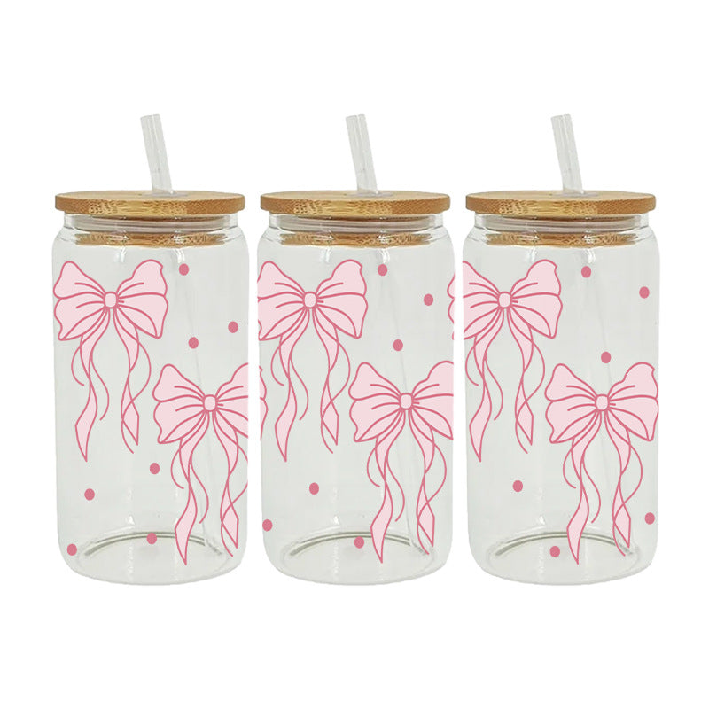Wholesale pink bow 16oz Cup UV DTF Wraps