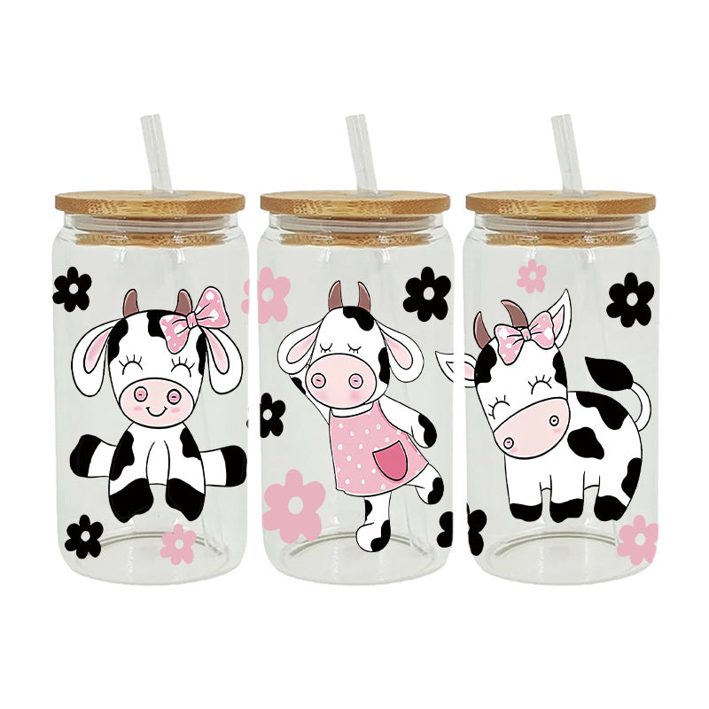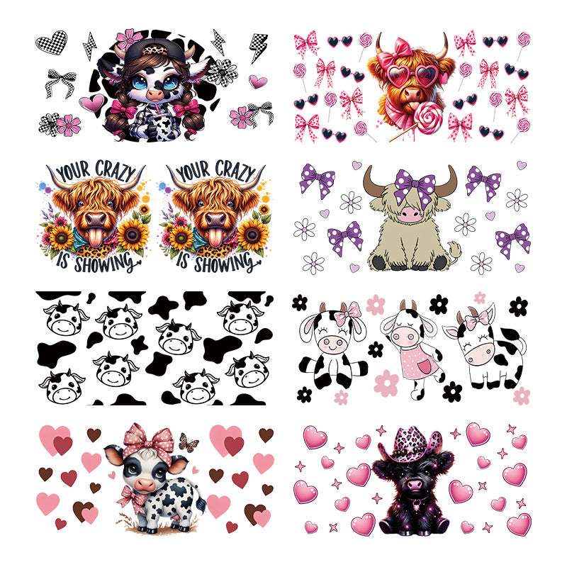 Wholesale Love Bow Cow 16oz Cup UV DTF Wraps