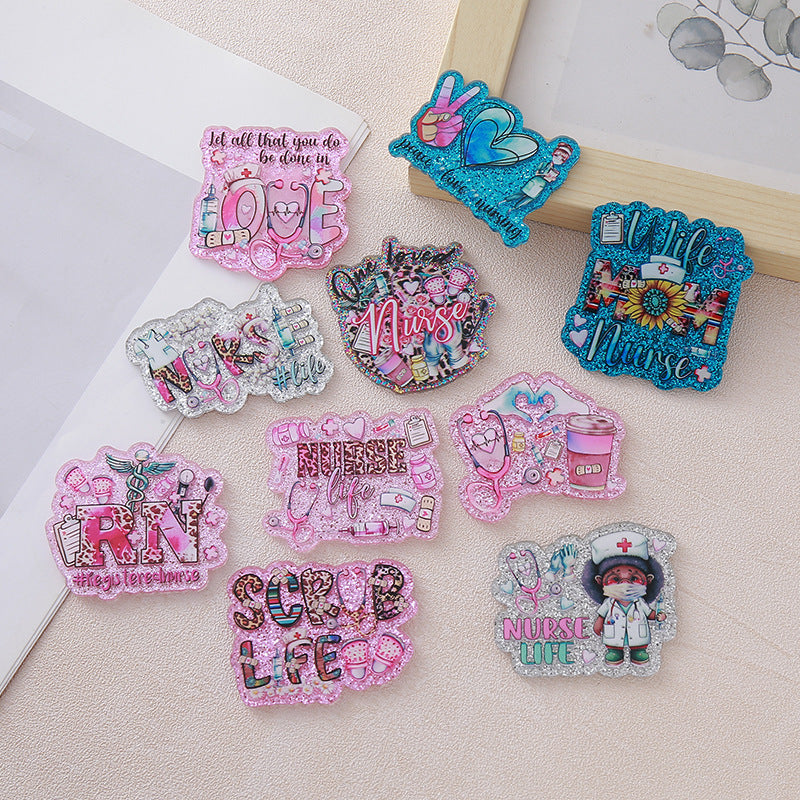 Wholesale 10pcs Cartoon Medical Staff Name Badges Acrylic Flatback