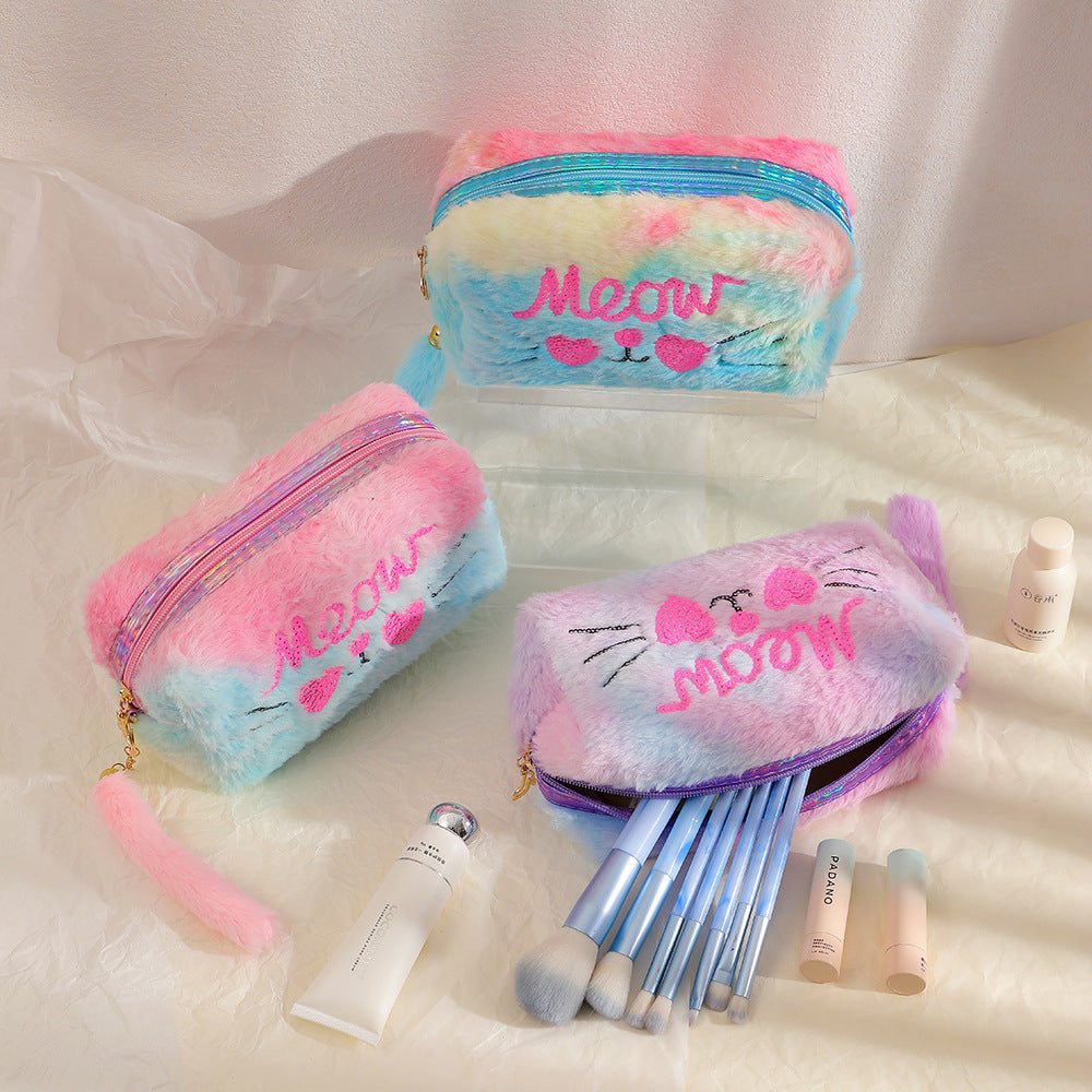 Wholesale Cartoon embroidered plush cosmetic bag autumn and winter