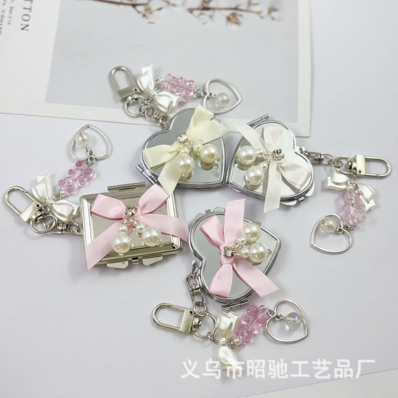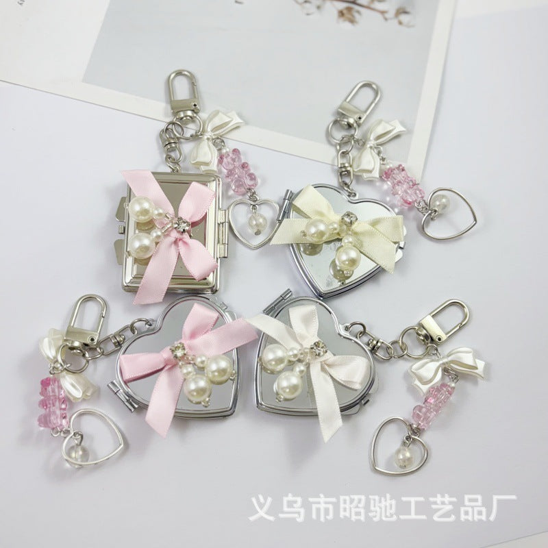 Wholesale Colorful Bow Love Mirror Metal Keychain
