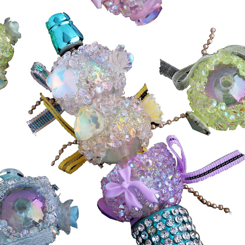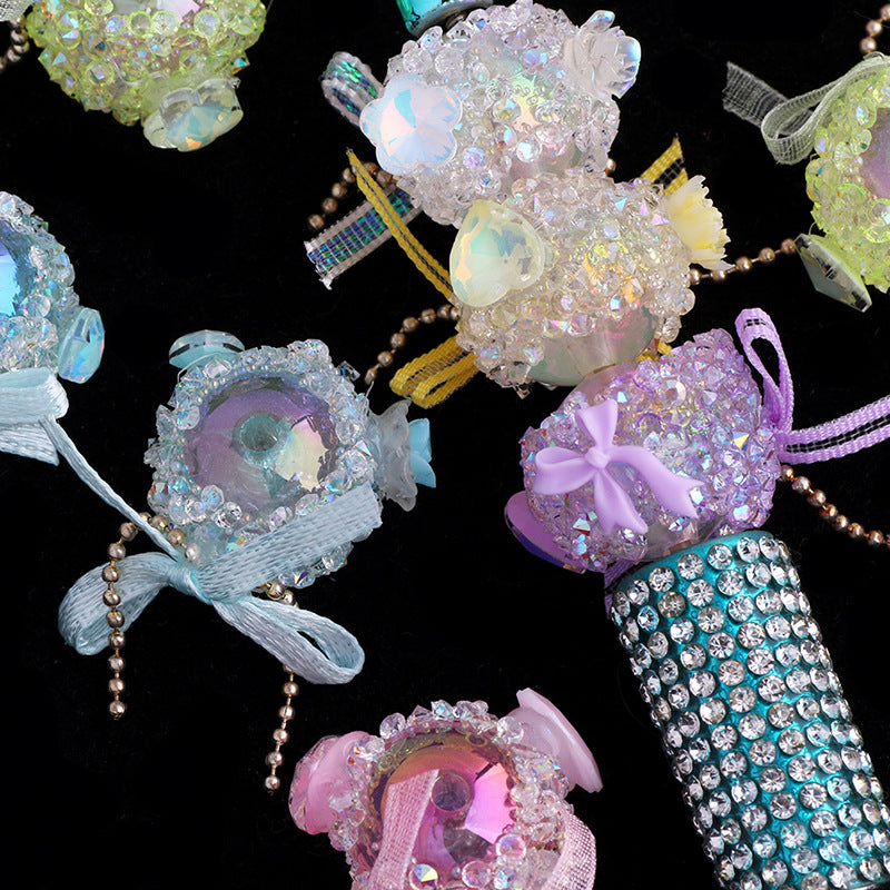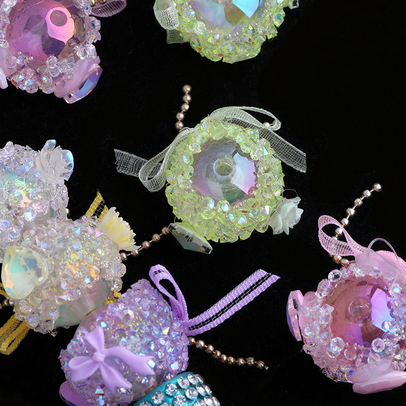 Wholesale 5pcs/pack New bow heart high-end straight hole loose beads beaded diy mobile phone chain key chain bag chain jewelry accessories