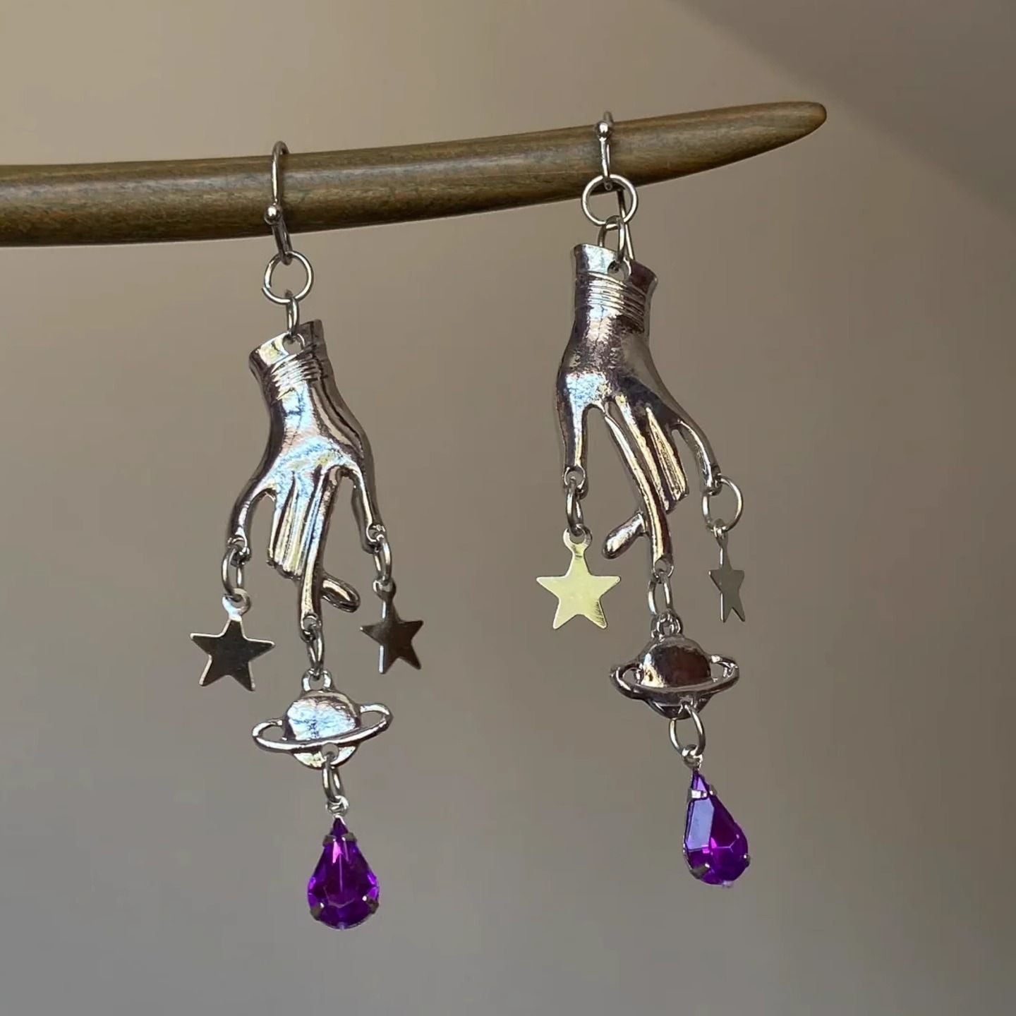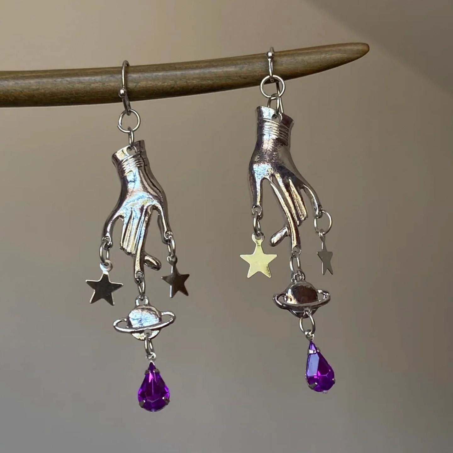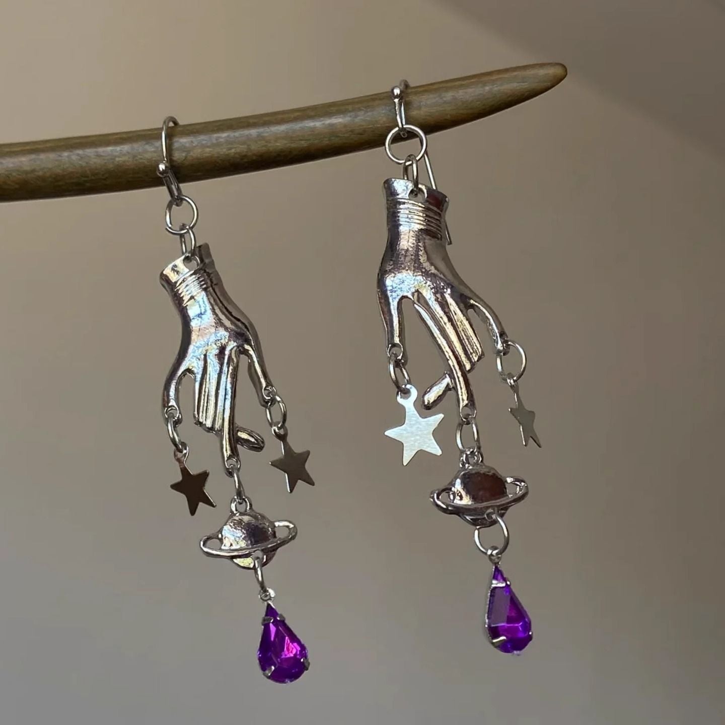 Wholesale Purple Magic Hand Pentagram Pendant Earrings