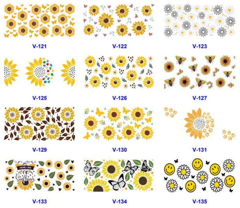 Wholesale 16pcs Sunflower Print Pen & Bookmark Stickers UV DTF Wraps