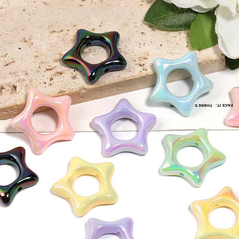 Wholesale 100pcs UV Coated Acrylic Hollow Pentagram Handmade DIY Star Beads