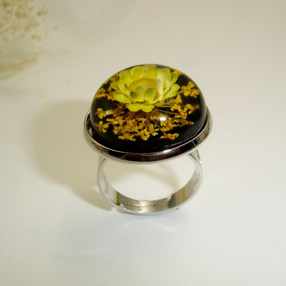 Wholesale 6pcs Handmade Vintage Real Flower Resin Dripping Dried Flower Ring