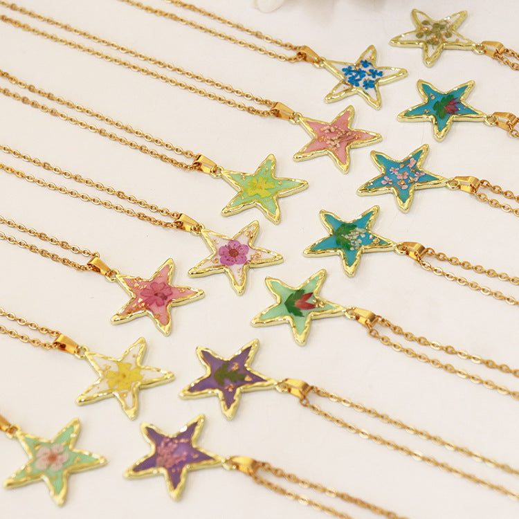 Wholesale 6pcs Real Flower Dried Flower Pendant Immortal Flower Colorful Epoxy Real Flower Necklace