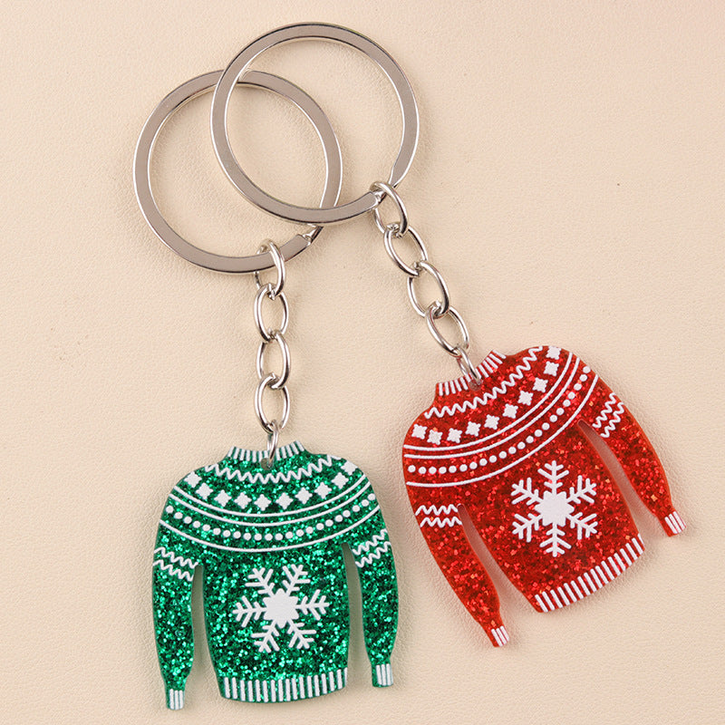 Wholesale Cartoon Design Snowflake Colorful Sweater Acrylic Simple Fashion Christmas Keychains