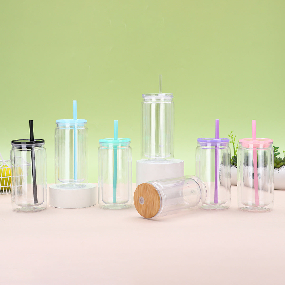 Wholesale Double Layer 16oz Plastic Cup Environmentally Friendly Acrylic Jelly Color Mason Cup Color Lid Can Be DIY Can Be Sticker
