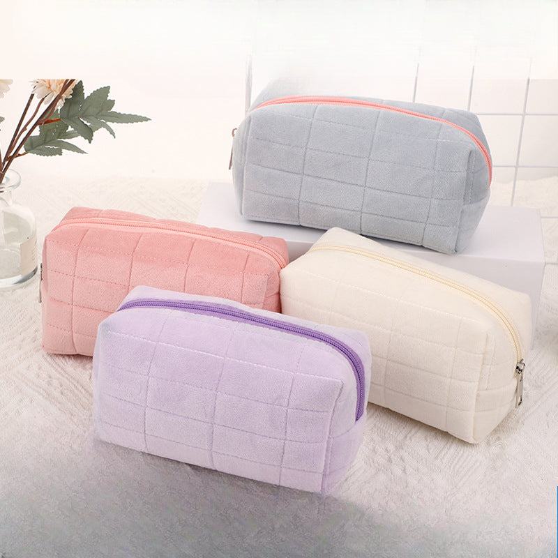 Wholesale Flannel Plaid Decompression Pillow Makeup Travel Convenient Storage Large Capacity High-end Toiletry Bag