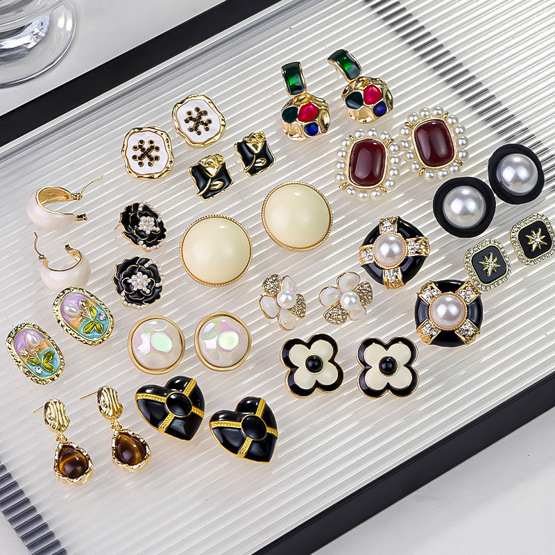 Wholesale French Retro Vintage Flower Pearl Earrings