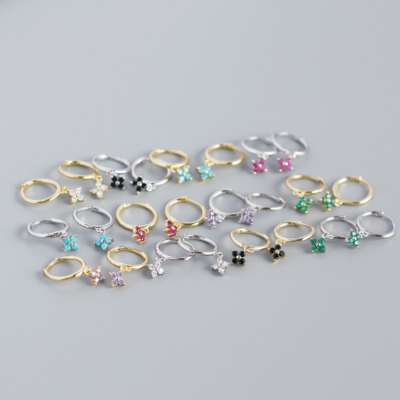 Wholesale French Style S925 Sterling Silver Geometric Diamond Floral Silver Earrings