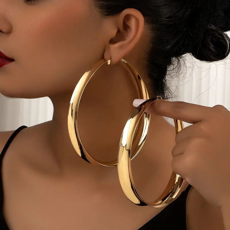 Wholesale Gold circle shape vintage plain hoop flat earrings